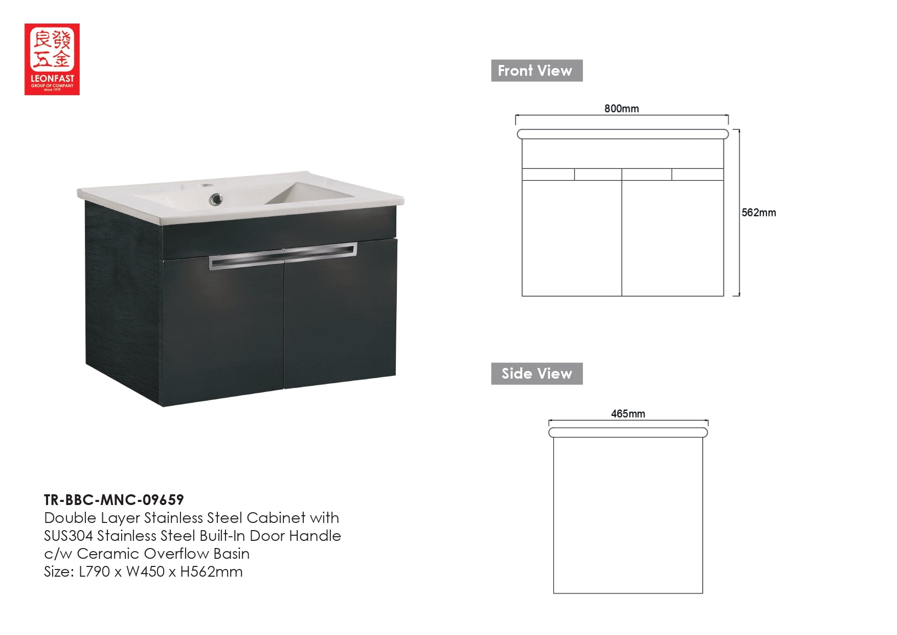 Dimension: L790 x W450 x H562mm