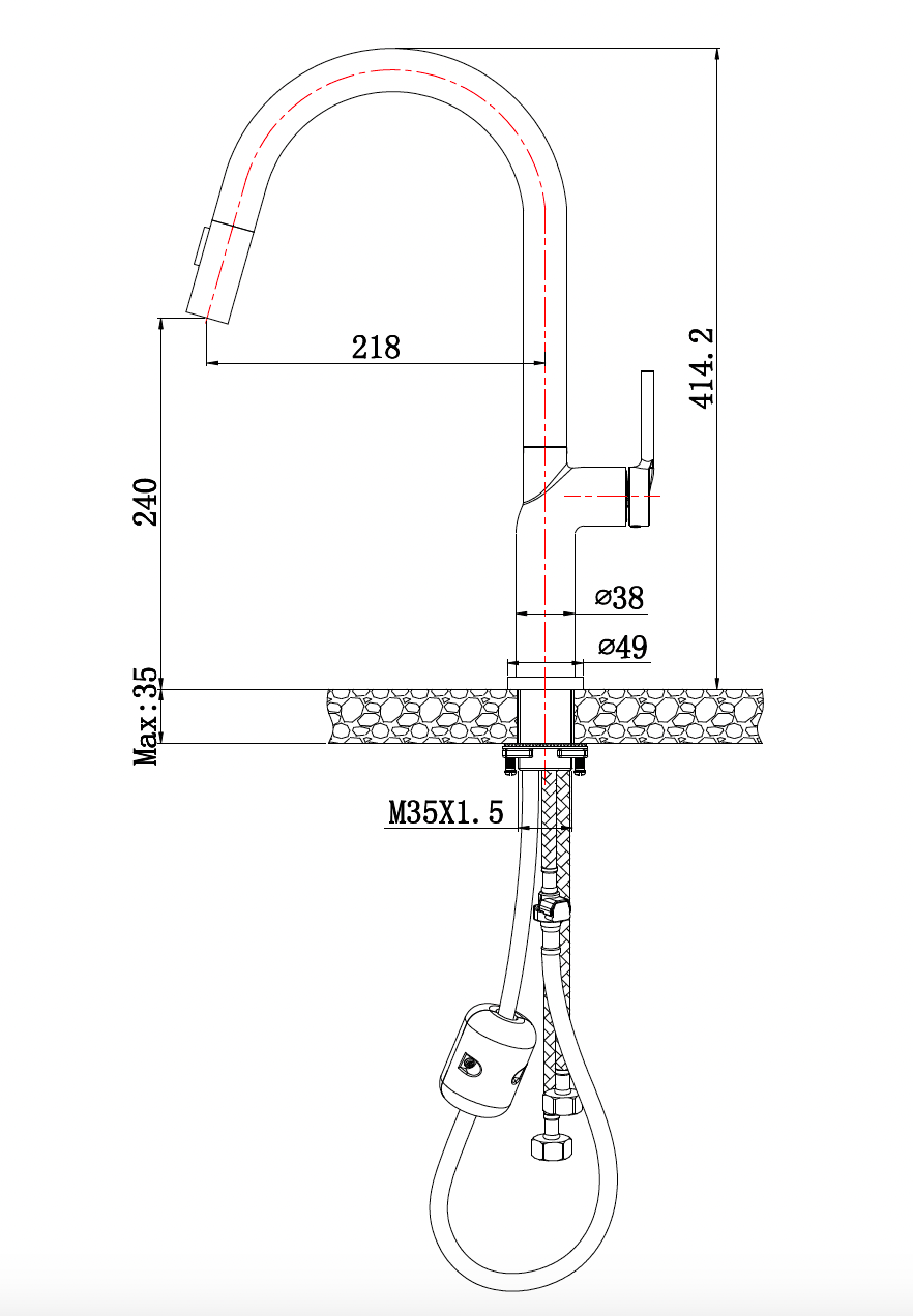 SUS304 Single Lever Pull-Down Pillar Sink Mixer - Matt Gold