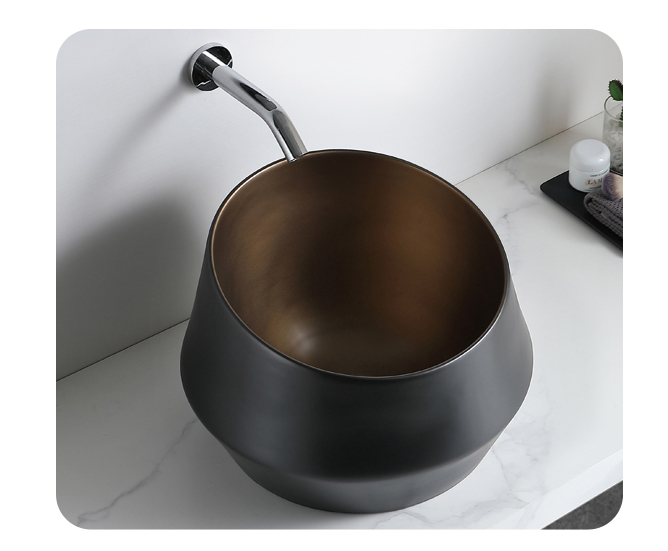 Discover the MOOV Above Counter Top Basin in Matt Black & Red Bronze, a stylish and functional wash basin crafted from durable ceramic. With dimensions of 445 x 445 x 290mm, this basin is perfect for enhancing your bathroom's aesthetic. Enjoy peace of mind with a lifetime warranty against manufacturing defects (T & C apply). Upgrade your bathroom with this elegant and practical addition.