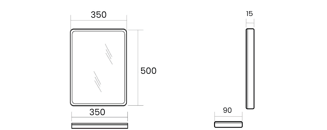 Enhance your space with the stylish and functional Mirror - L350 x W15 x H500mm. This sleek mirror is crafted with high-quality materials and features a modern design that complements any décor. The mirror's generous size provides ample reflection for your grooming and styling needs.