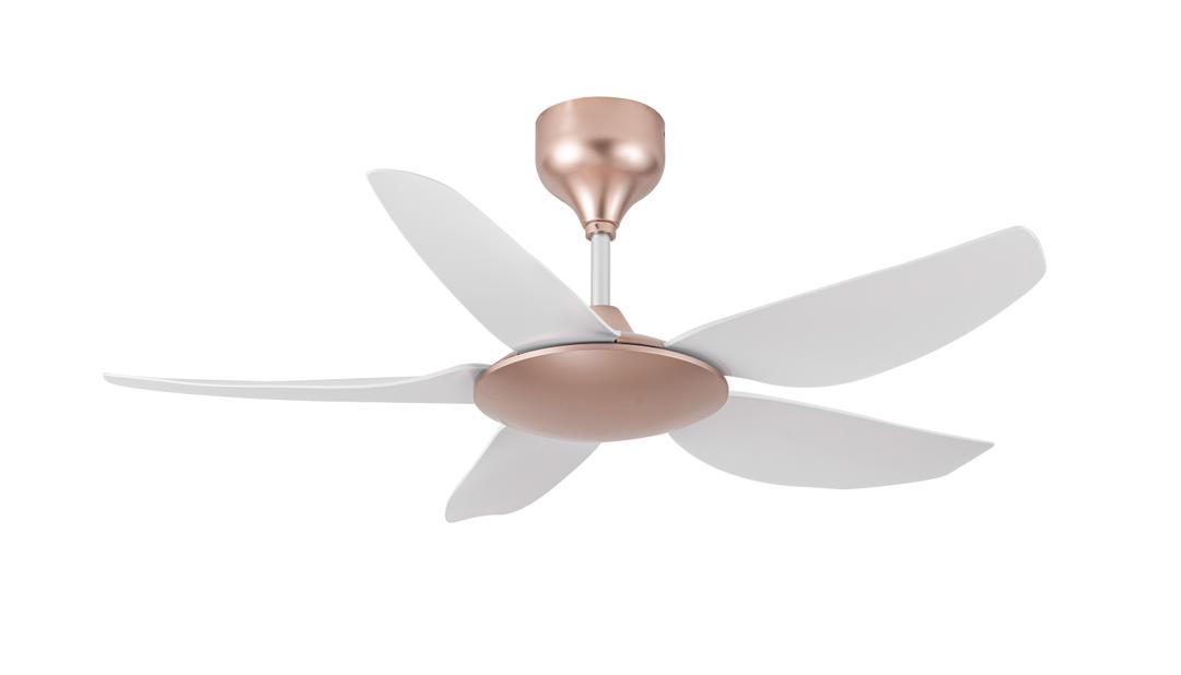 Make a statement with the Rezo Signature Zetta42 fan, a must-have accessory that adds a spark of sophistication to your home. Featuring a luxurious rose gold finish, this fan offers a unique blend of modern design and advanced technology, perfect for elevating any space. Add a touch of class to your home with this exquisite fan, and enjoy the cool breeze of modern luxury.