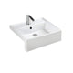 - Square-shaped white ceramic semi recessed wash basin with overflow