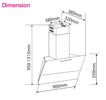 - Recommended installation height from electric hob: 300mm ~ 450mm