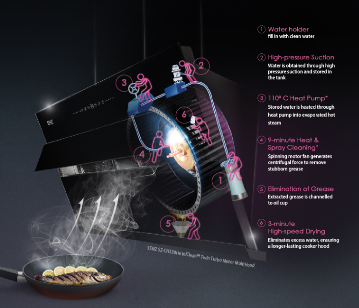 - Power Boost Twin motor which offer extremely strong suction power which extracts more grease and fumesand with standalone motor operation