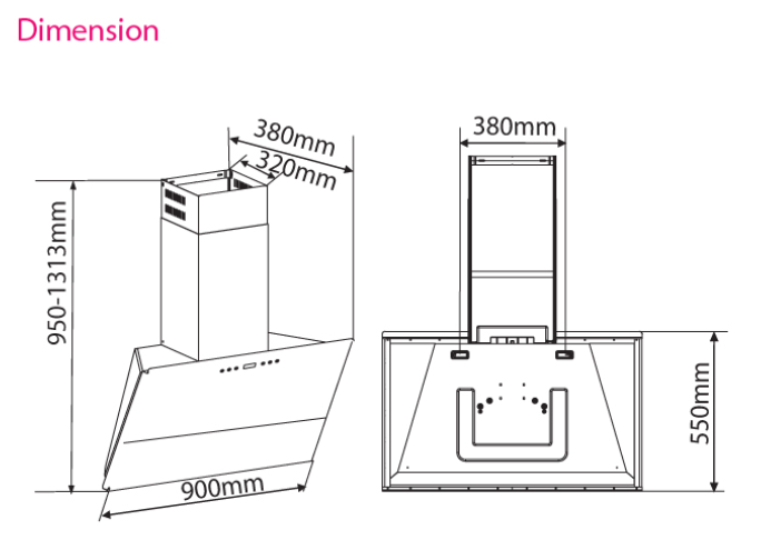 - Recommended installation height from gas hob: 400mm ~ 500mm
