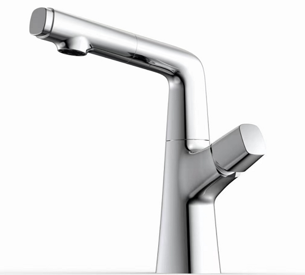 The Single Lever Pull-Down Pillar Sink Mixer - Chrome is a stylish and functional kitchen faucet that is perfect for any kitchen. It features a single lever design for easy operation, as well as a pull-down spray head for added convenience. The faucet is made of high-quality brass and stainless steel for durability, and it is finished in a beautiful chrome finish.