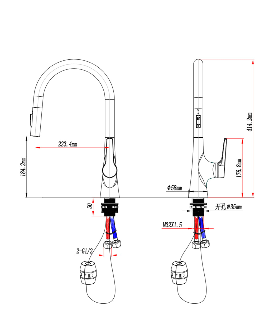 - Pull-down spray head for added convenience