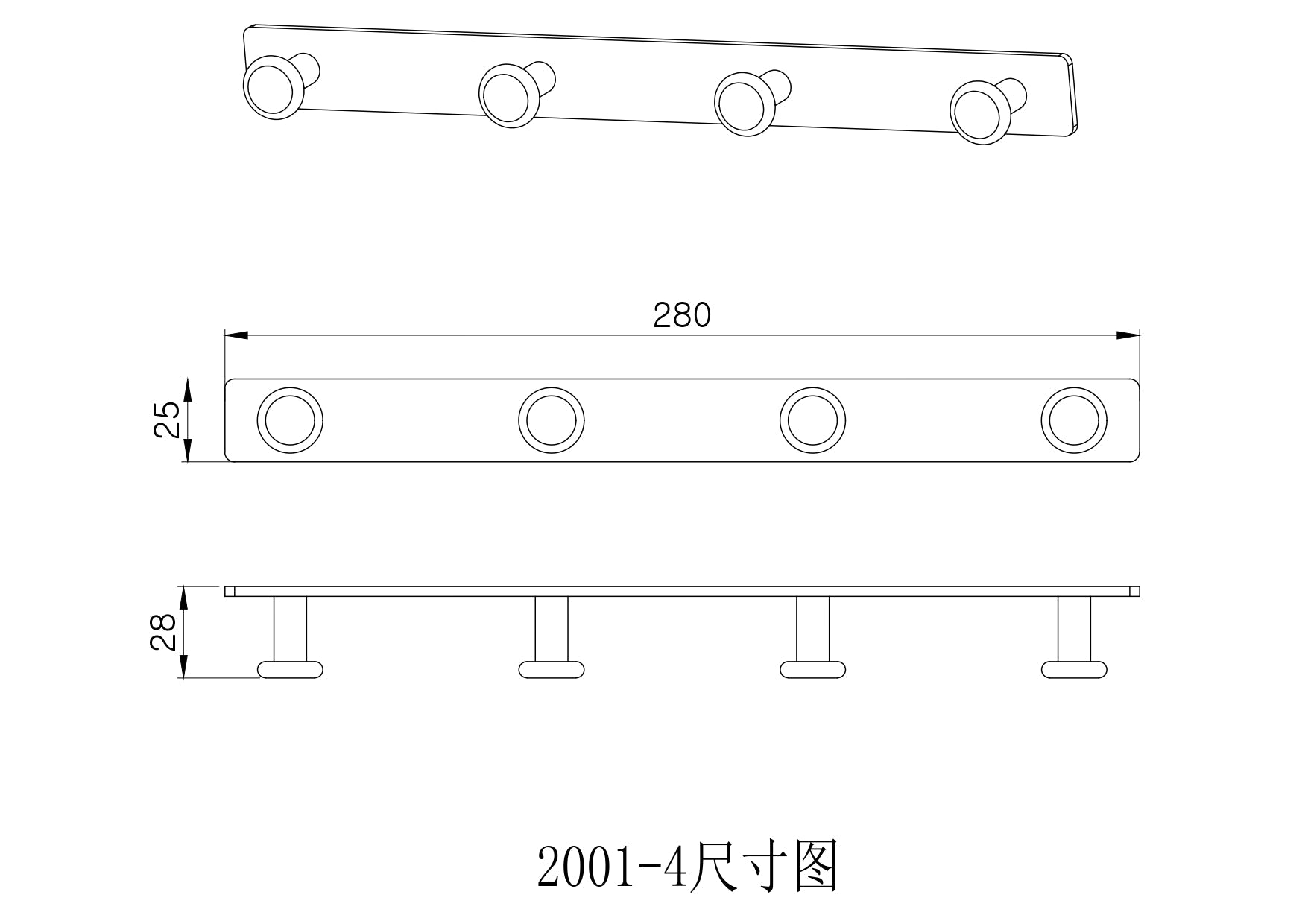 Dimension: L200 x W28 x H25mm
