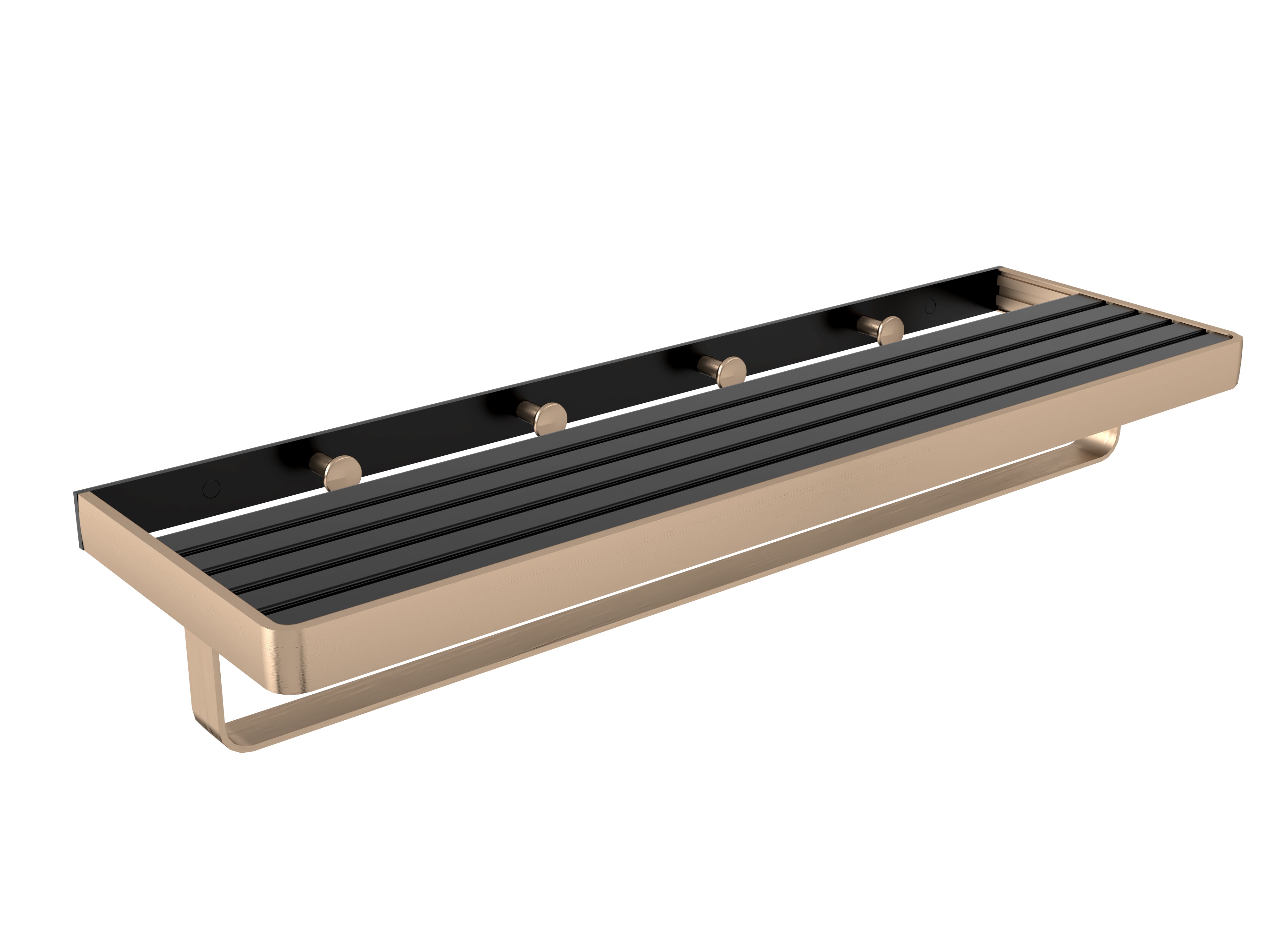 Upgrade your bathroom with the Tora Towel Rack with Bar in Black & Copper Gold. This stylish and durable aluminium towel rack measures L600 x W185 x H90mm, providing ample space for your towels while adding a modern touch to your decor. Designed for functionality and longevity, this towel rack ensures your towels are always within reach. Perfect for any bathroom setting, it is the ideal solution for organized and elegant living.