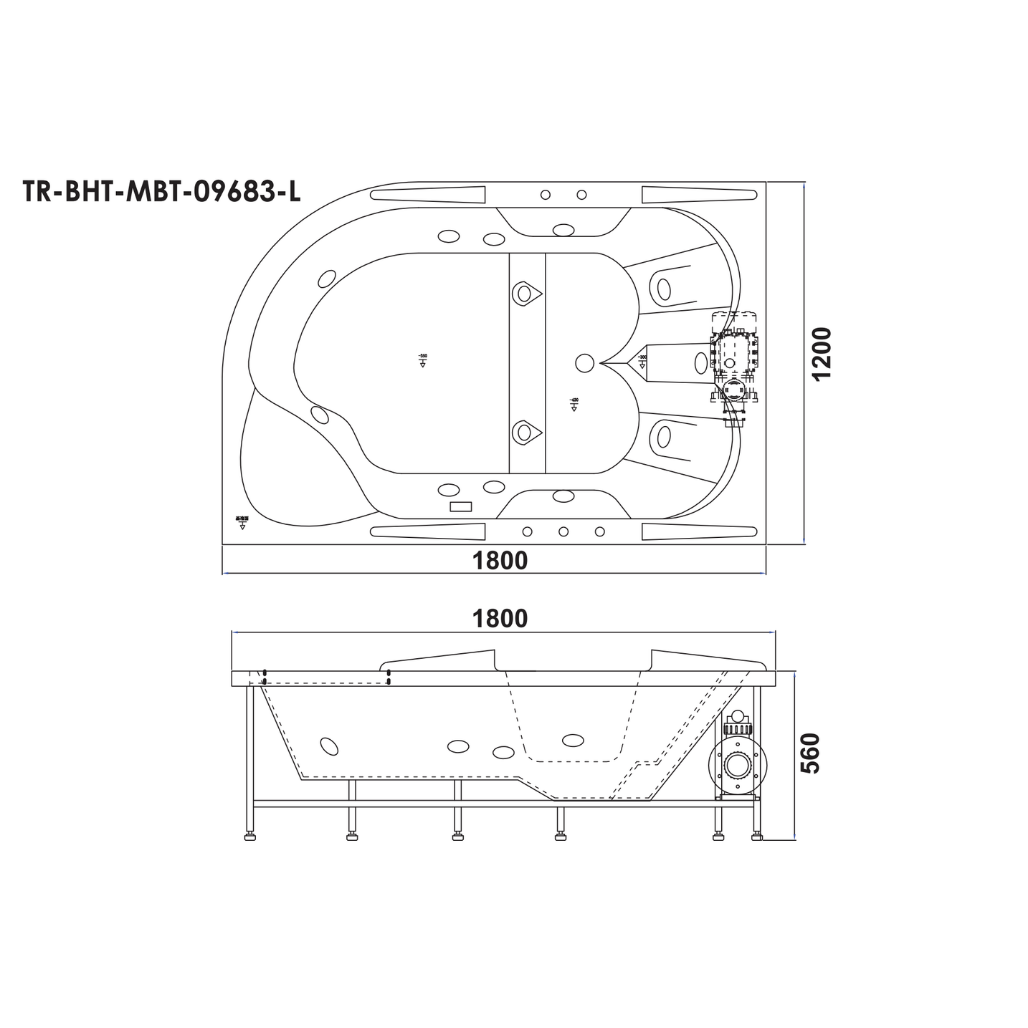 Massage Bathtub Size: L1800 x W1200 x H600mm