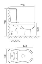 • White ceramic closed couple two-piece water closet, S trap (Floor outlet)